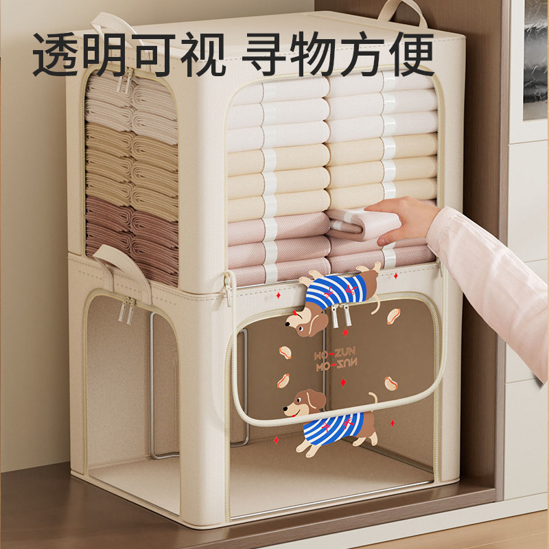 佳帮手衣服收纳箱家用装衣物被子百纳箱布艺可视窗衣柜专用整理箱