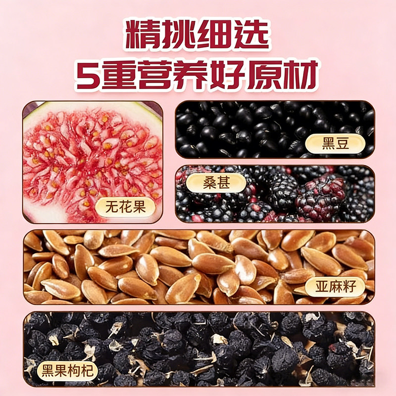 亚麻籽无花果黑豆枸杞桑葚种子循环补充生茶包黄体酮养生茶养雌茶