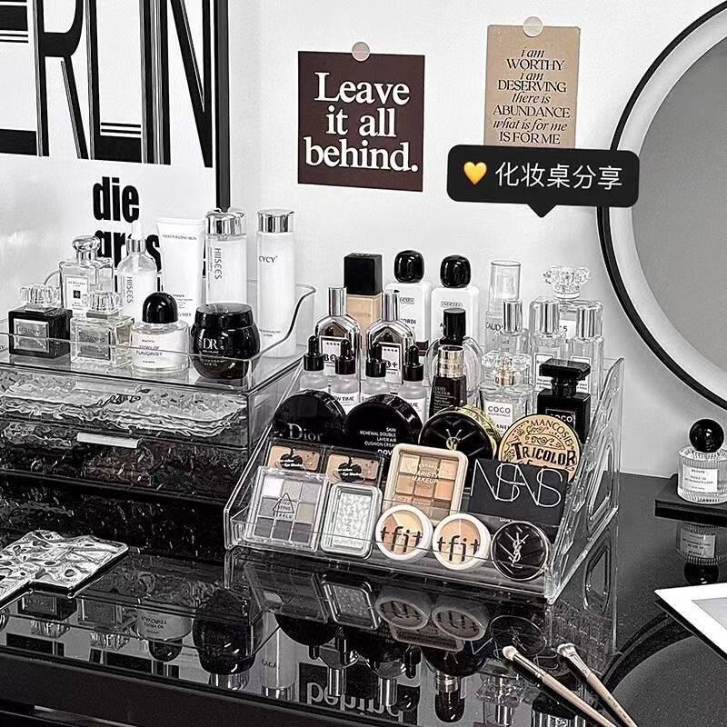 面膜收纳盒亚克力化妆品分格盒透明桌面大容量梳妆台护肤品置物架
