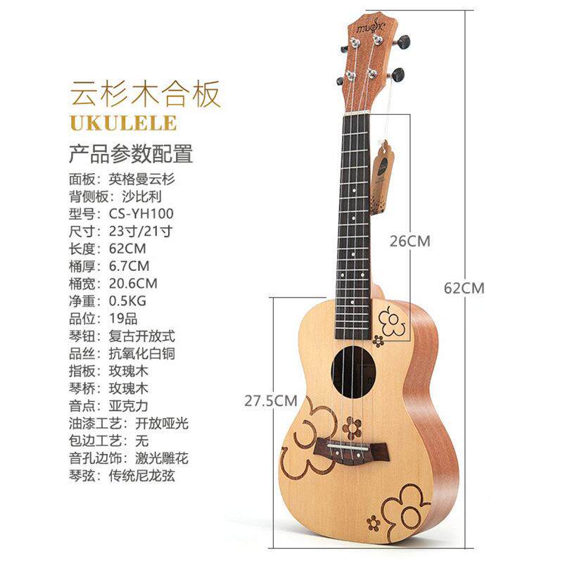 23寸云杉木小花朵尤克里里Ukulele乌克丽丽 夏威夷四弦琴小吉他