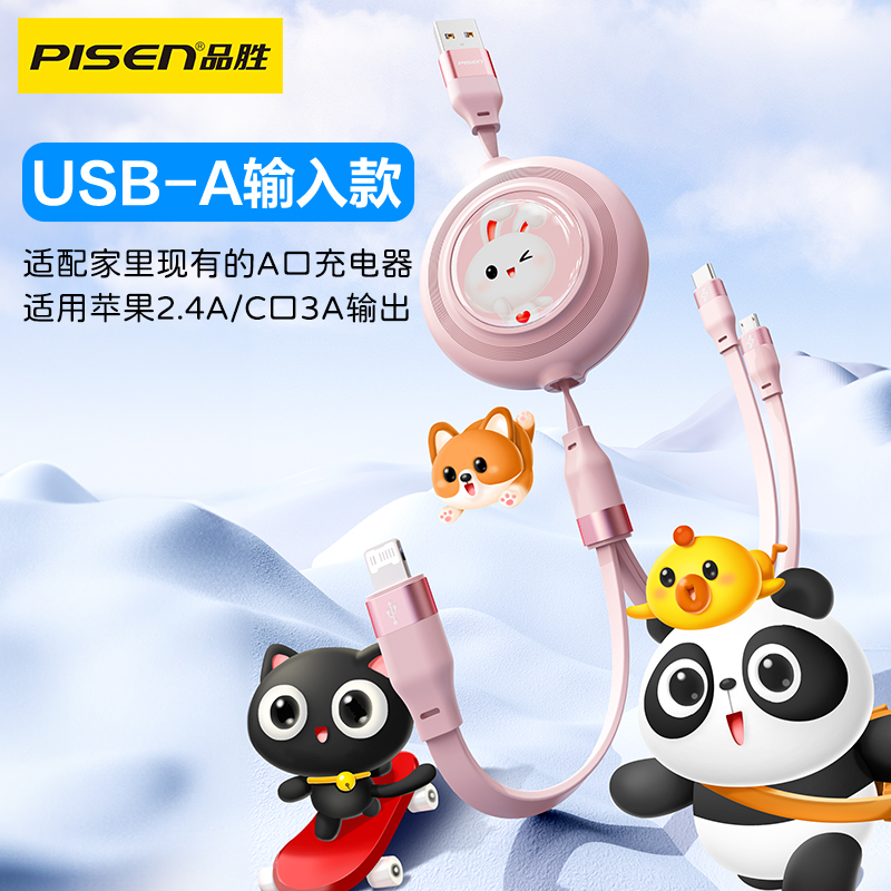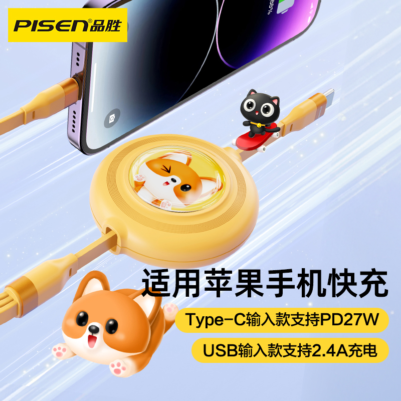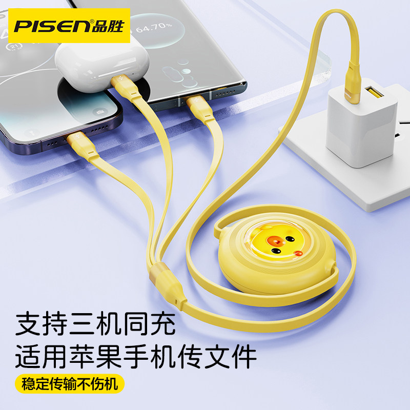 品胜数据线三合一充电线tpyec一拖三伸缩27W快充适用苹果iPhone17/16Pro华为小米安卓手机多功能三头车载usb