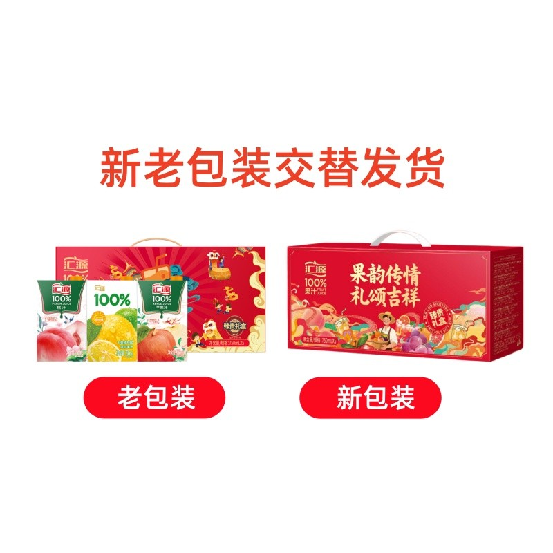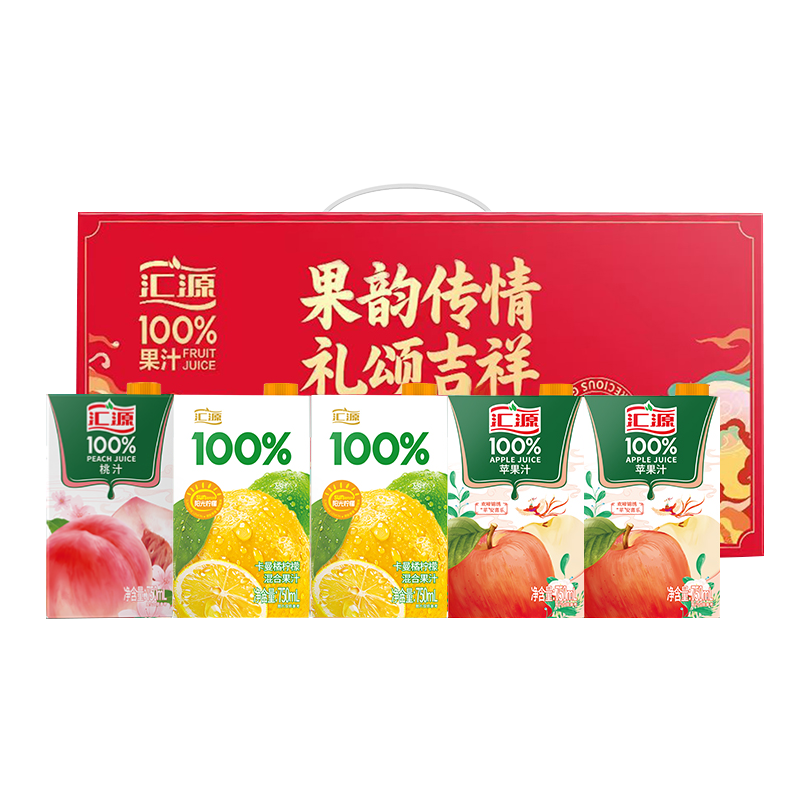 【汇源礼盒】汇源100%果汁750ml*5盒整箱苹果汁桃汁阳光柠檬饮料