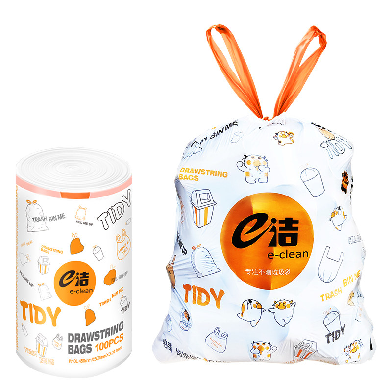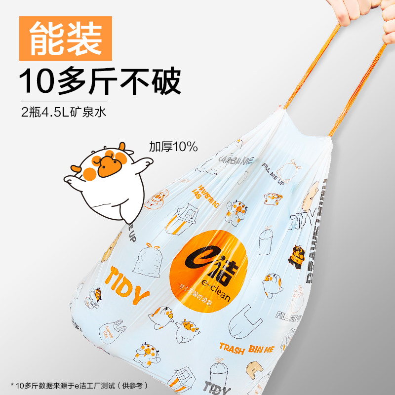 e洁垃圾袋加厚手提式卡通卡通家用厨房宿舍可爱一次性抽绳塑料袋