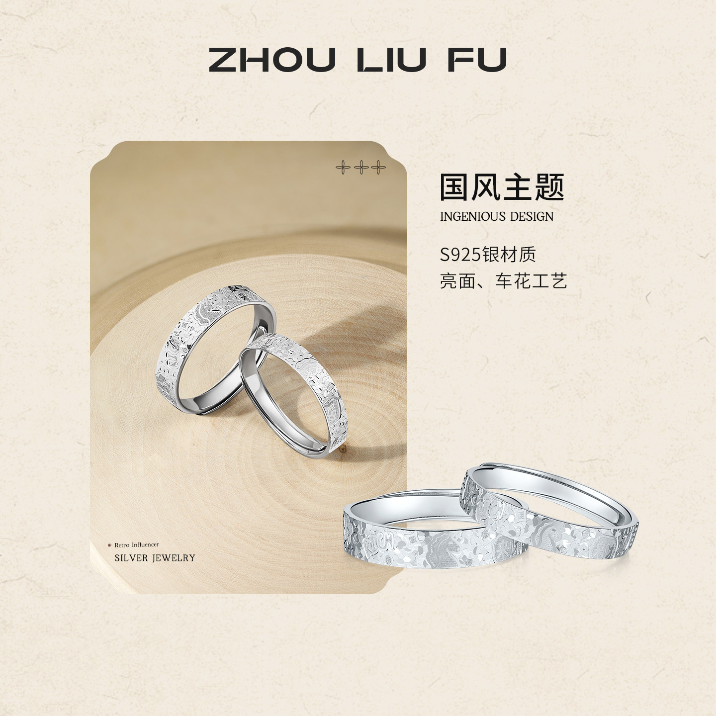 周六福岁岁来财戒指情侣款S925银独角兽指环手饰送女友节日礼物