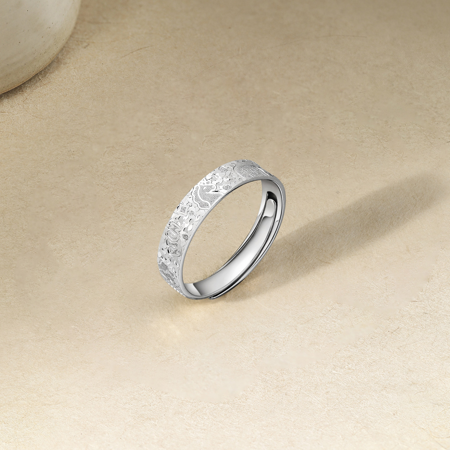 足银S999碎冰冰闭口戒指女轻奢高级感爆闪纯银指环情侣对戒尾戒