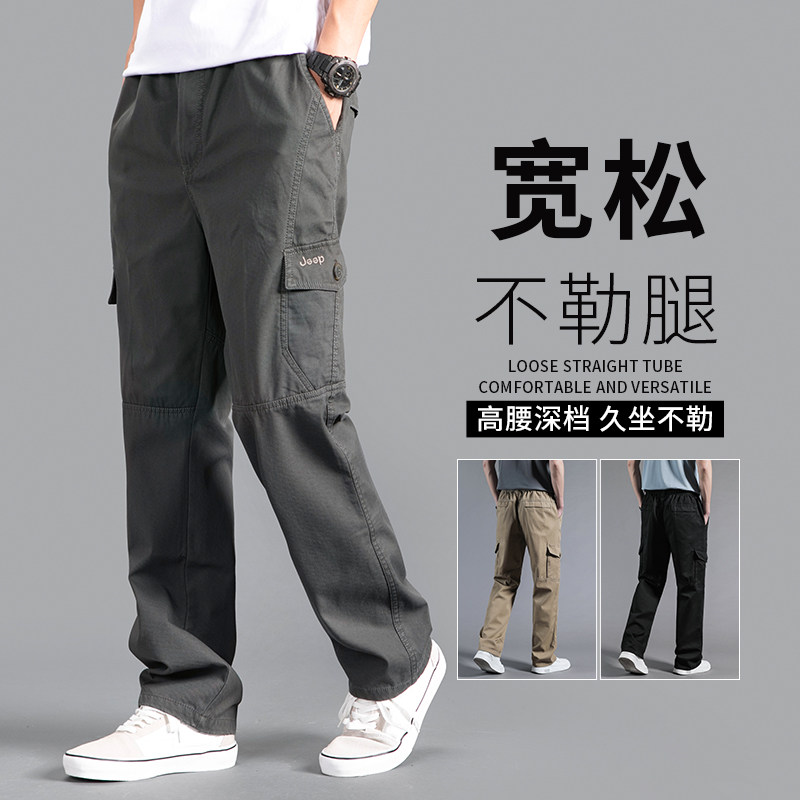 工装裤男纯棉宽松大码直筒长裤子男士春秋新款休闲裤耐磨薄款厚款