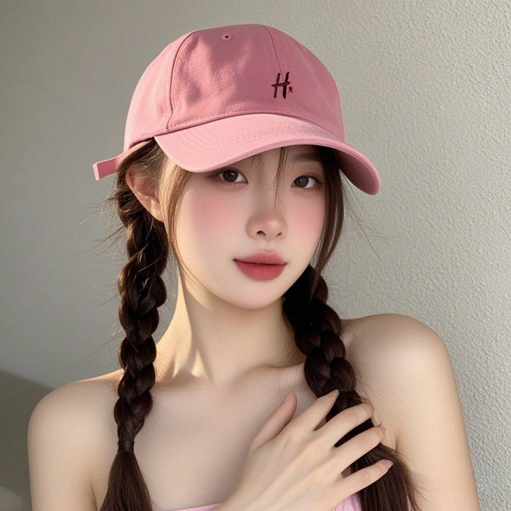 版型好!树莓粉2025显脸小大头围新款H字母棒球帽男女鸭舌防晒帽