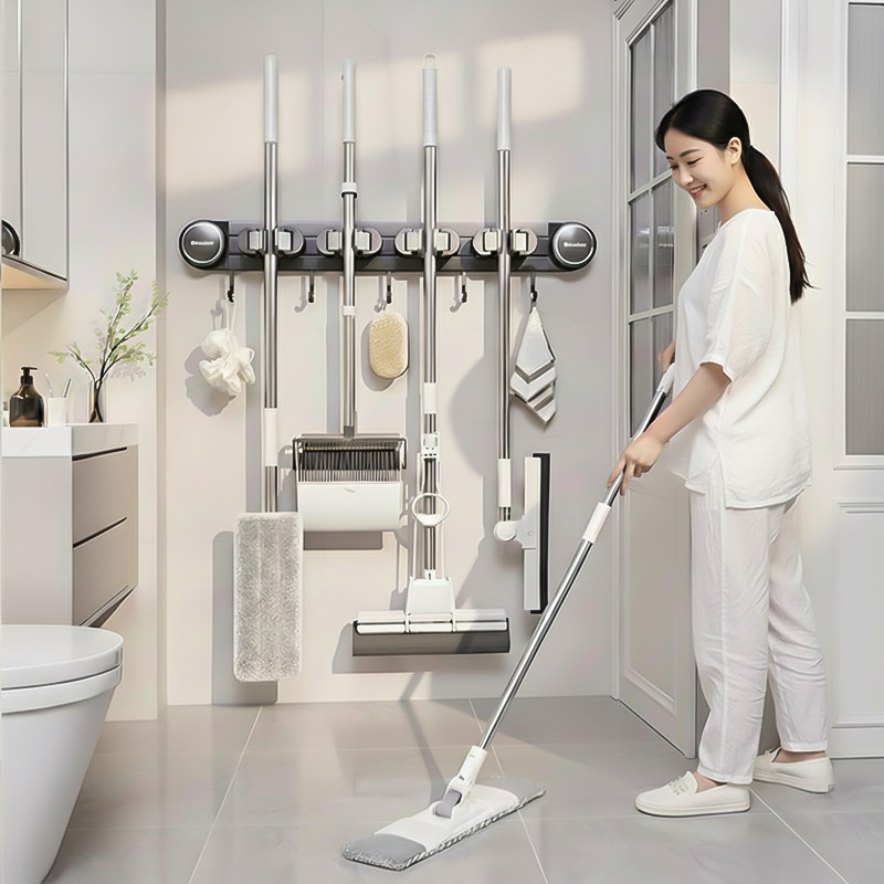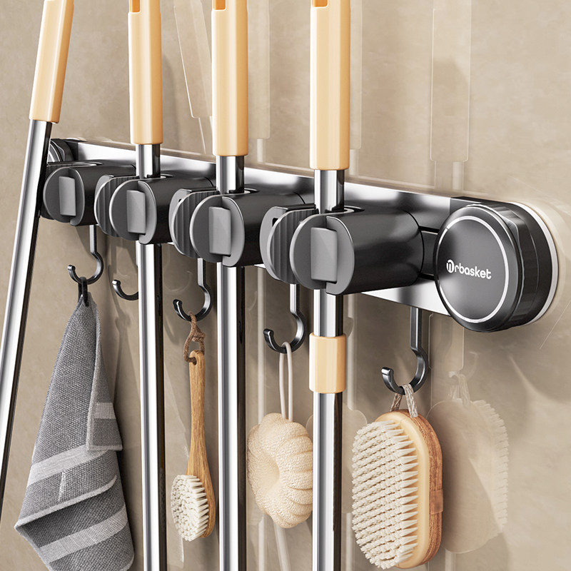 吸盘拖把壁挂夹浴室卫生间免打孔扫把拖布拖把架挂钩墙上收纳神器