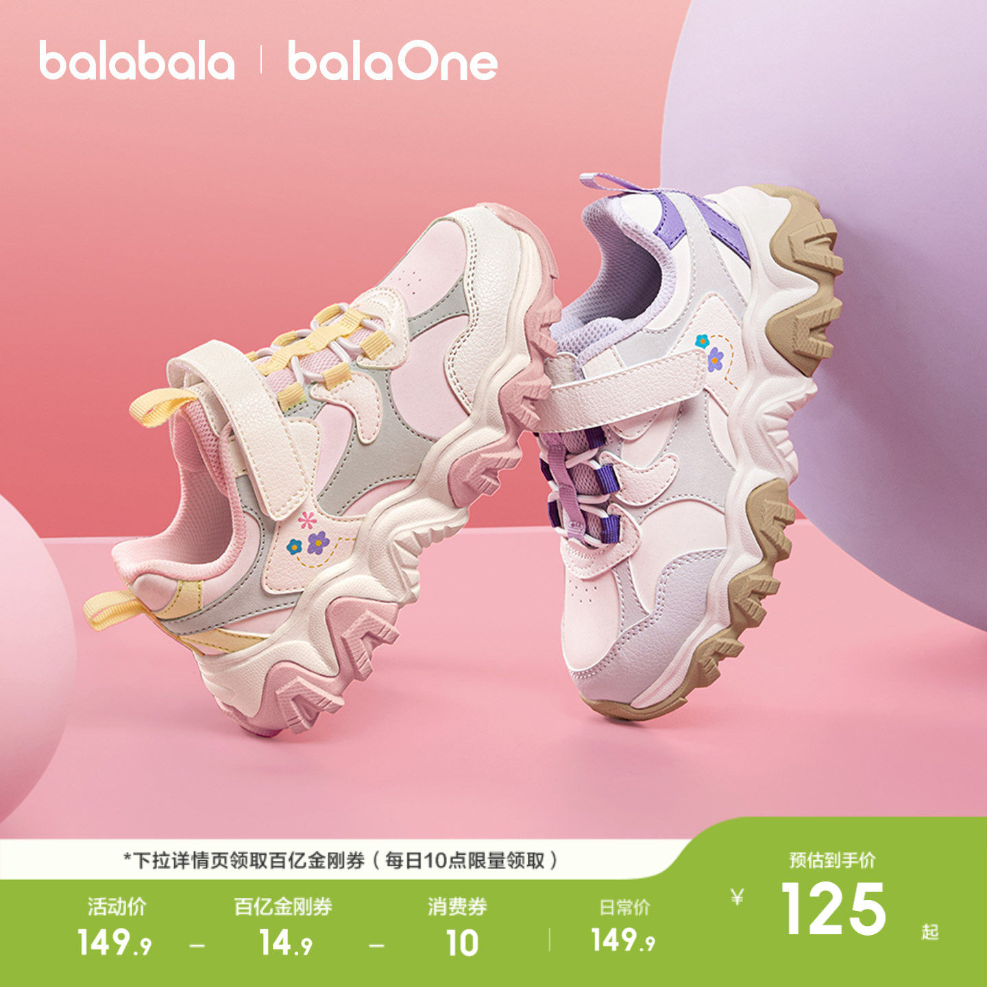巴拉巴拉童鞋男童运动鞋女童鞋子春秋2026新款跑步休闲厚底老爹鞋