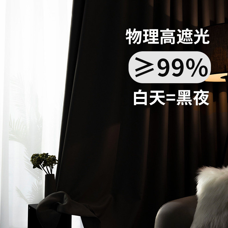 窗帘防紫外线落地成品纯色帘子法式加厚遮光卧室帘子挂钩款2025新