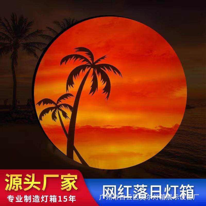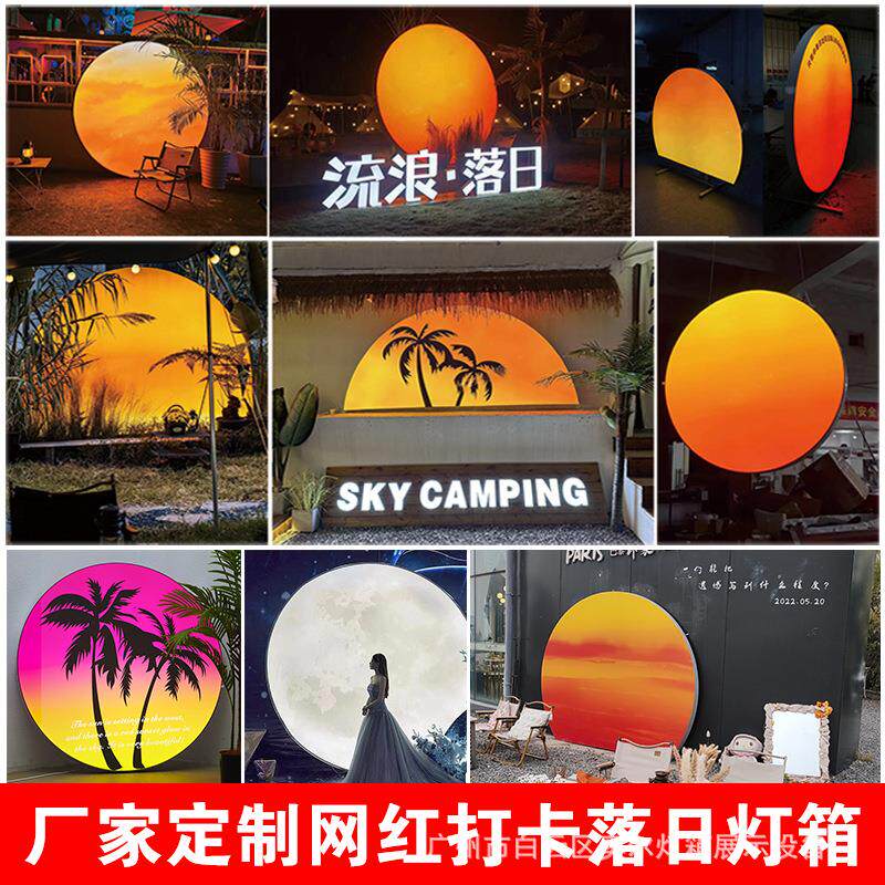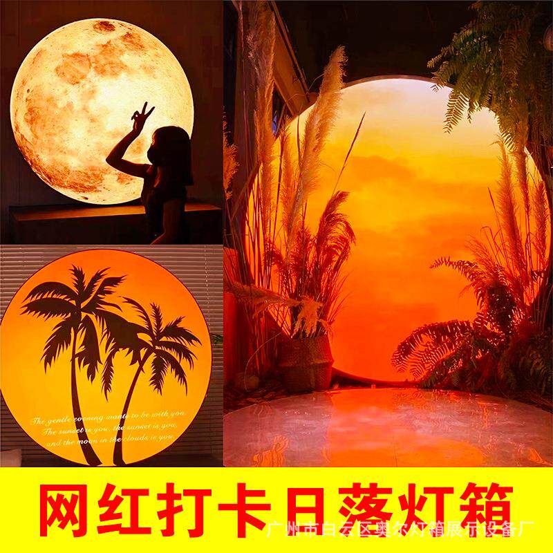 发光落日户外月亮灯箱拍照打卡摆摊夜市舞台道具婚宴摆件装饰布置