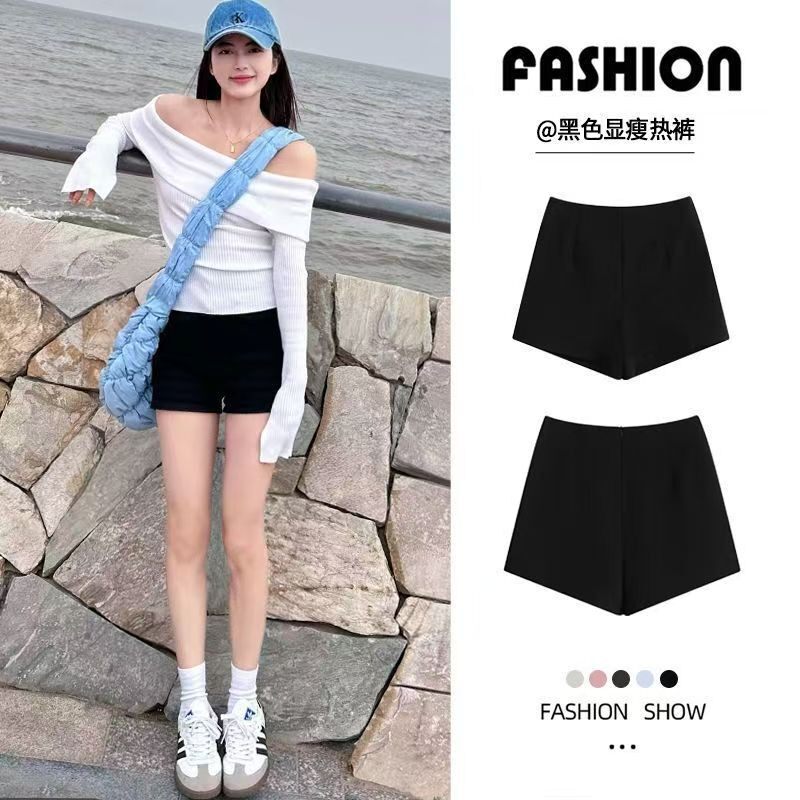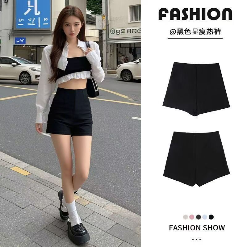 夏季打底短裤女2025新款高腰紧身弹力热裤外穿打底裤黑色靴裤女