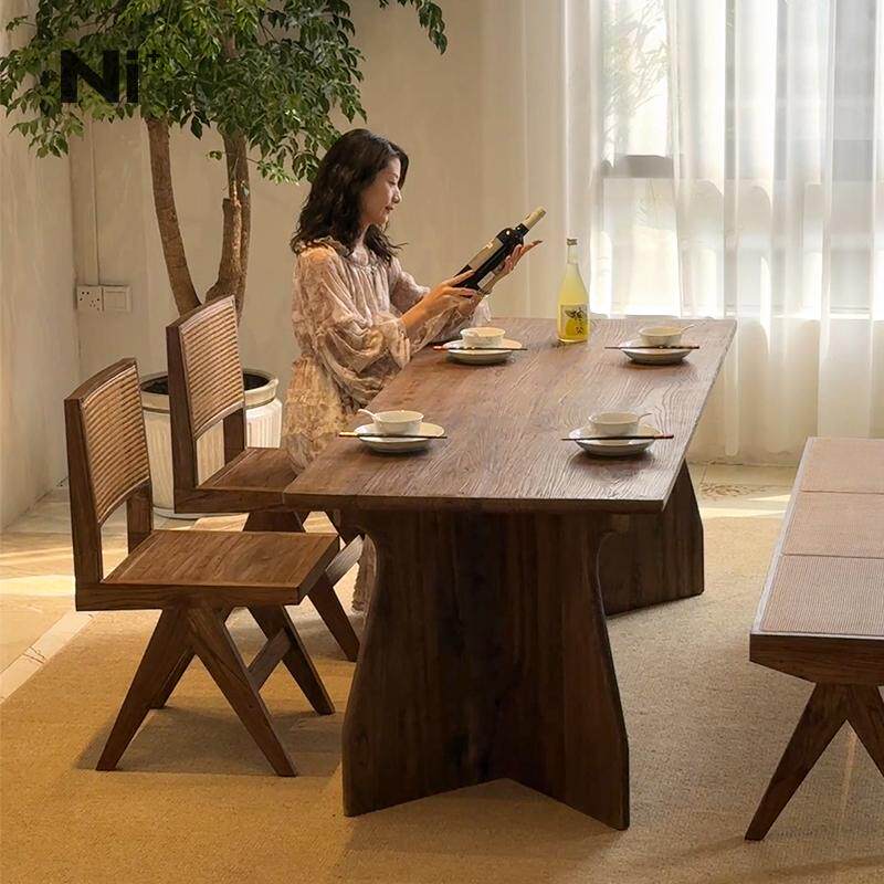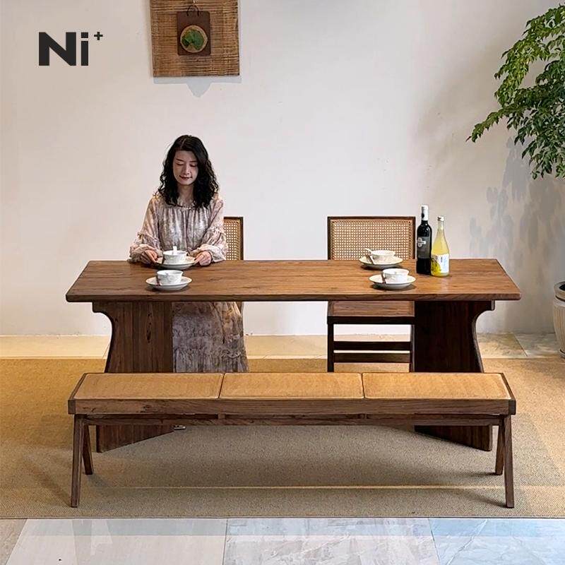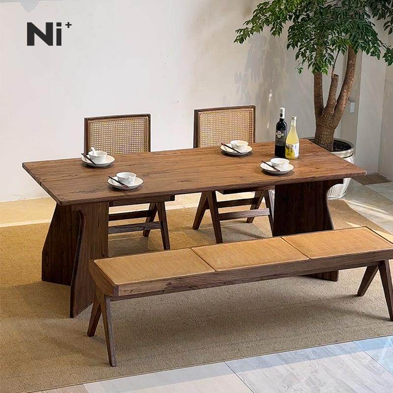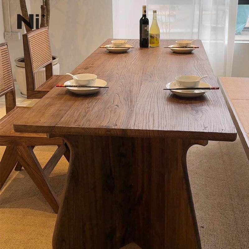 Ni尼家中古侘寂风实木餐桌长方形饭桌子餐厅民宿办公人字腿大板桌
