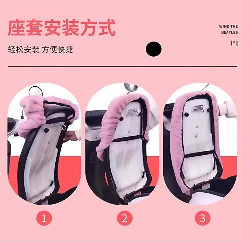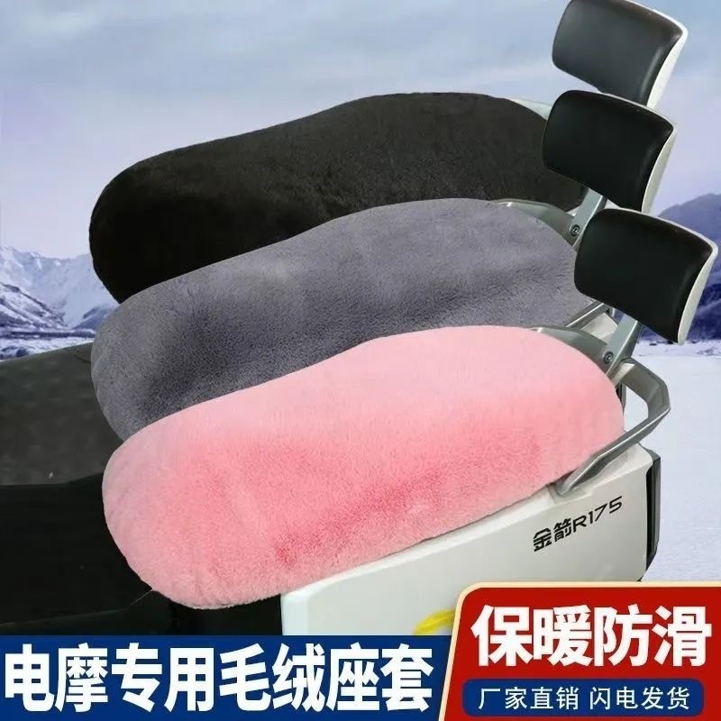 摩托车坐垫套电动车座套电摩踏板车冬季加厚毛绒保暖坐垫套电瓶车