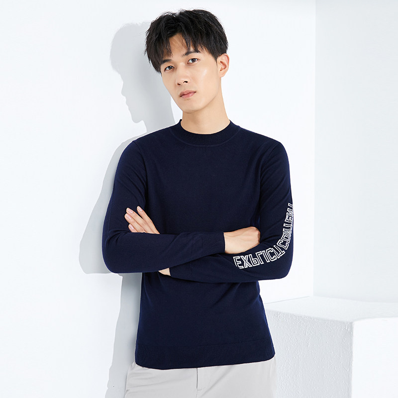 鄂尔多斯市半高领100%纯羊毛衫男休闲中厚保暖毛衣针织打底羊绒衫
