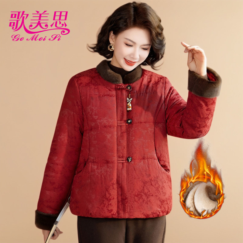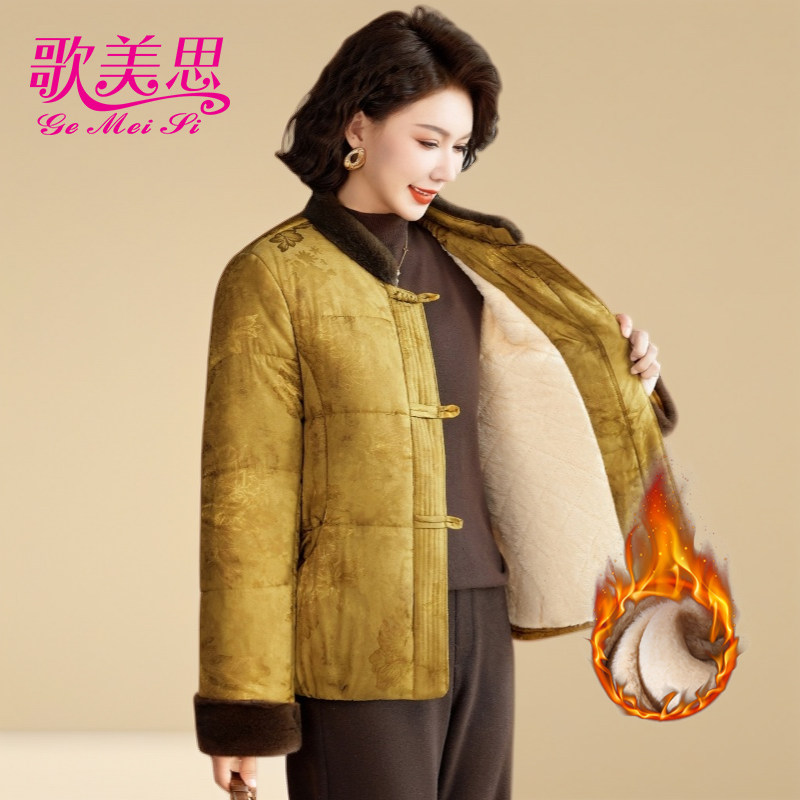 妈妈秋冬装德绒保暖棉衣短款加厚内胆中老年人女薄款小棉袄可外穿