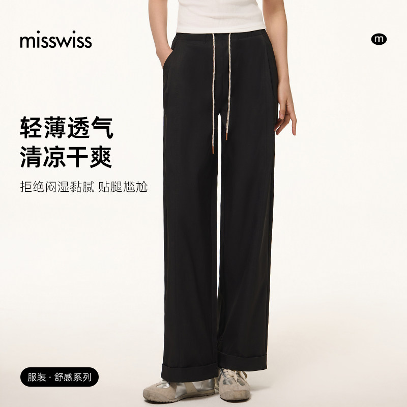 MissWiss山本裤女2026春夏新款高腰直筒垂感慵懒显瘦休闲阔腿裤子