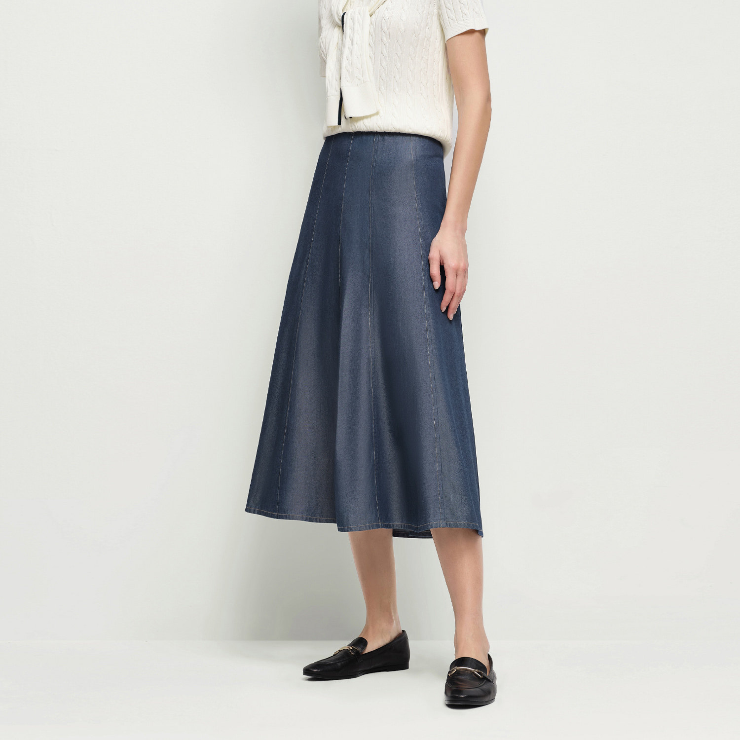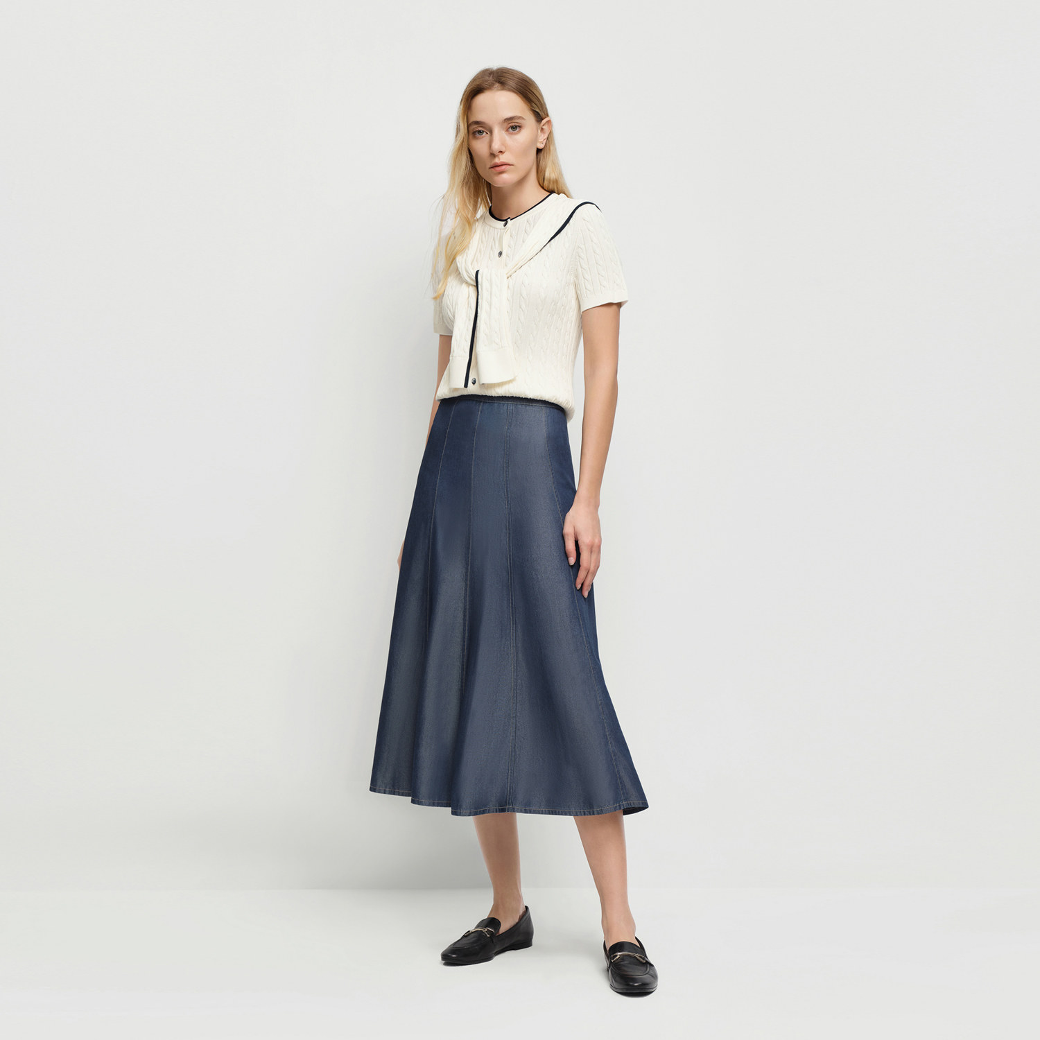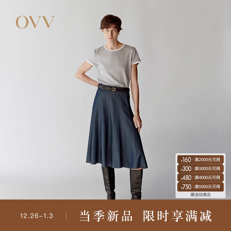 OVV2025春夏新款女装淡人柔美优雅舒适大方天丝A字半身裙
