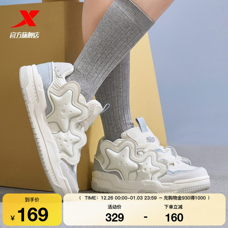特步星星鞋2025冬季新款女鞋板鞋百搭休闲鞋运动鞋面包鞋子