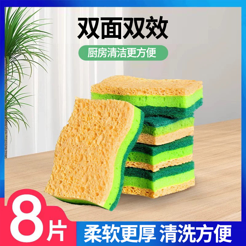 木浆棉洗碗海绵擦家用加厚抹布厨房清洁木浆双面不沾油刷锅百洁布