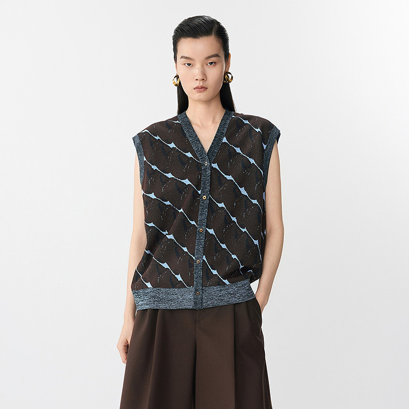 【早春上新】JNBY/江南布衣春夏毛衫V领无袖开襟休闲女5P4314500