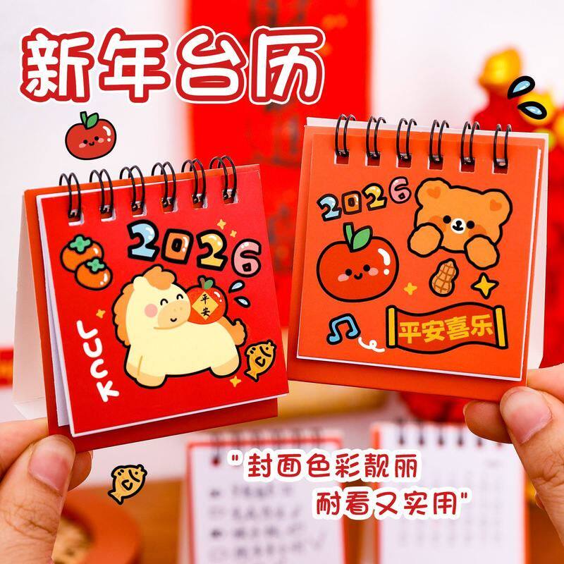 2026新年卡通台历迷你打卡日历可爱马年桌面装饰摆件小台历小礼品