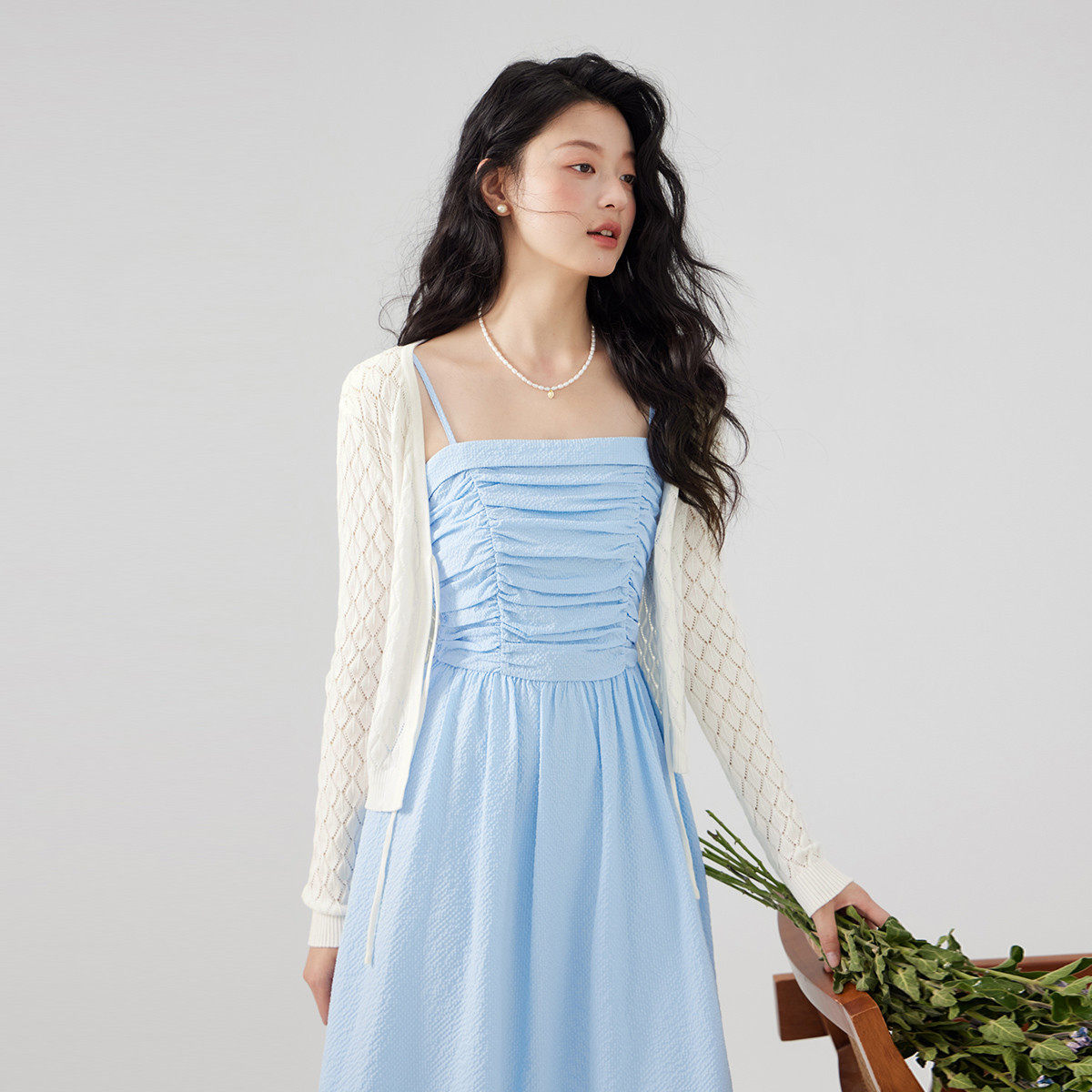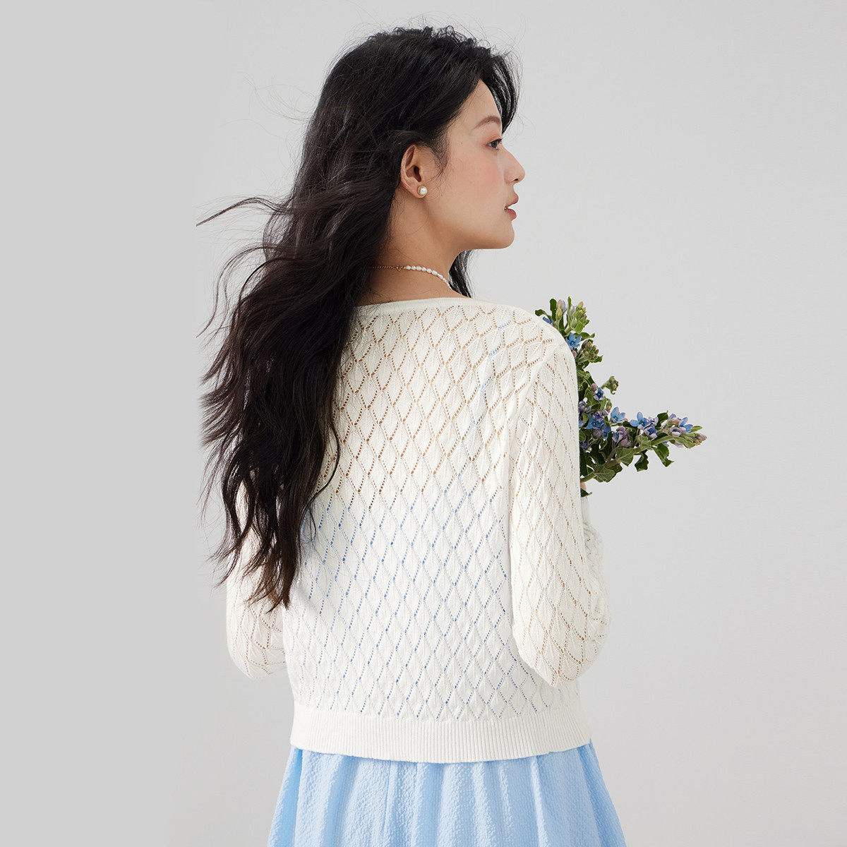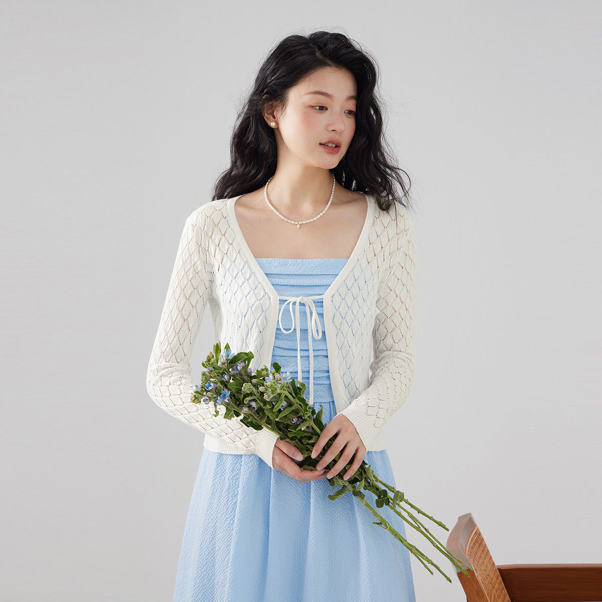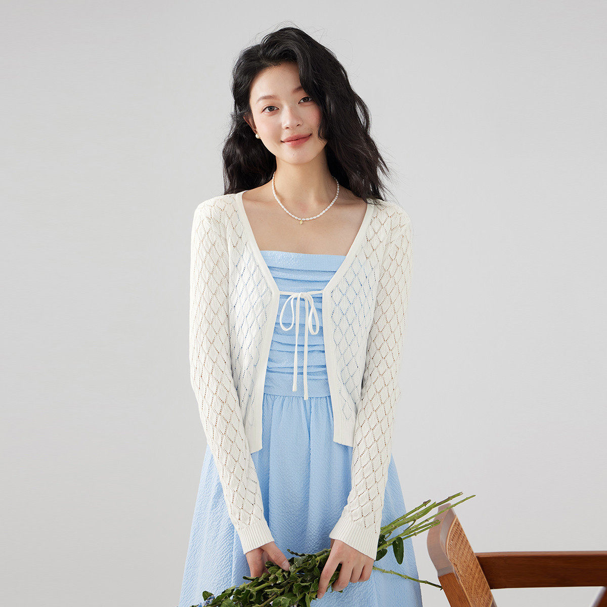 one more2025夏季薄款镂空针织开衫女士高级感系带披肩外搭空调衫