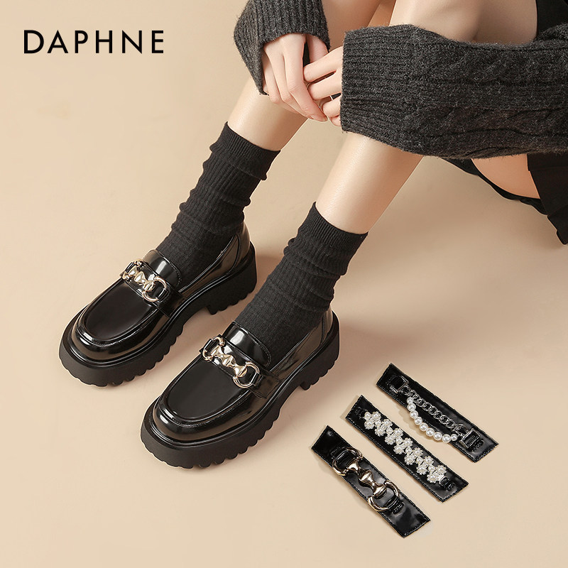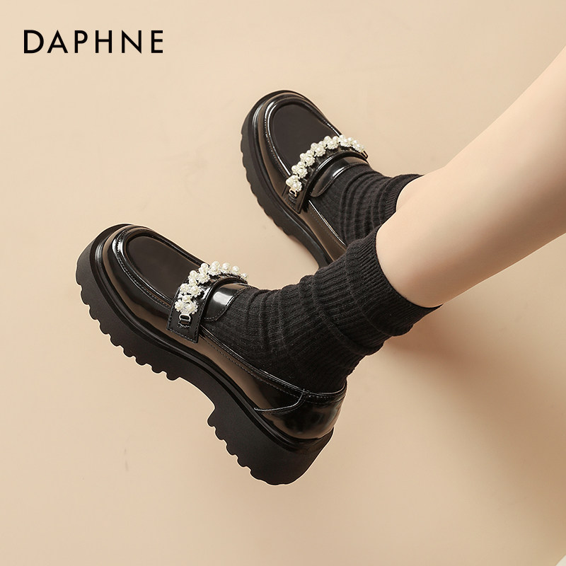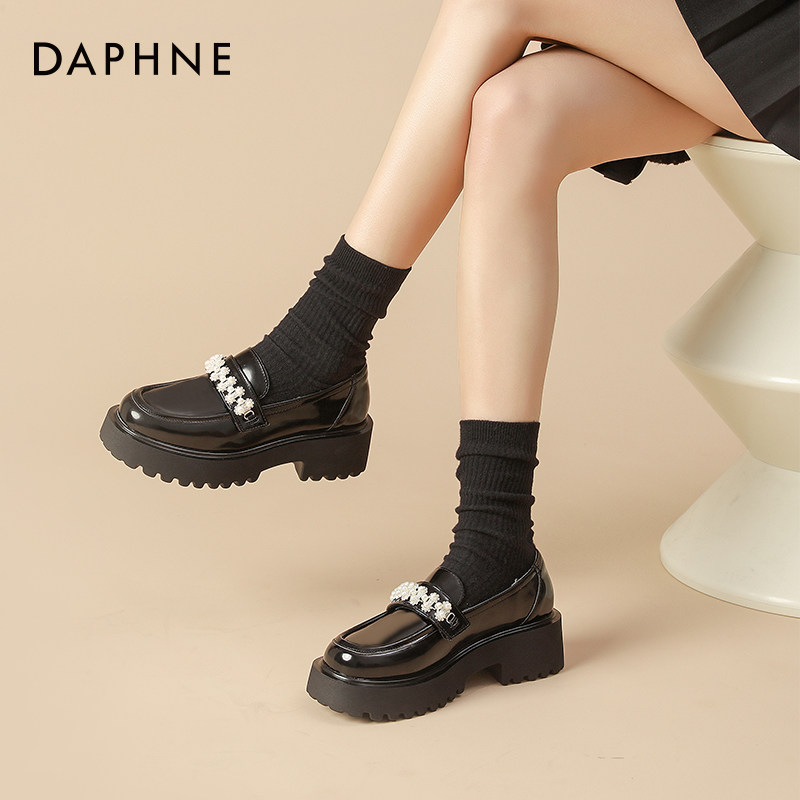 达芙妮厚底乐福鞋女2026新款春季黑色英伦风小皮鞋女款百搭单鞋女