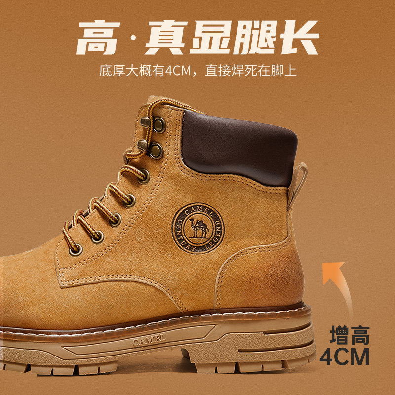 王俊凯同款骆驼马丁靴男春季高帮大黄靴情侣真皮户外登山工装靴女