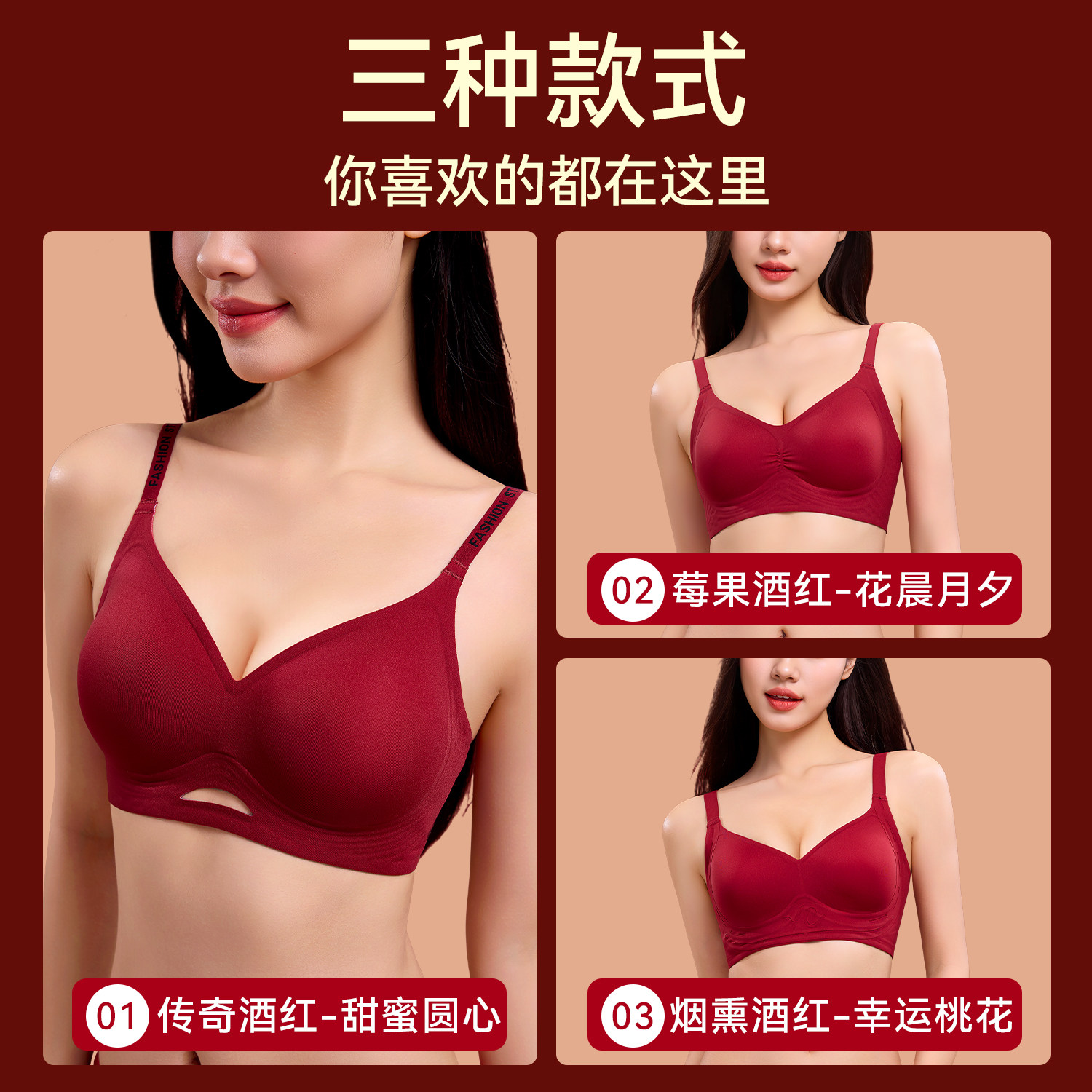 【一起红】金三塔桑蚕丝文胸本命年新年婚庆红色缎面内衣裤16姆米