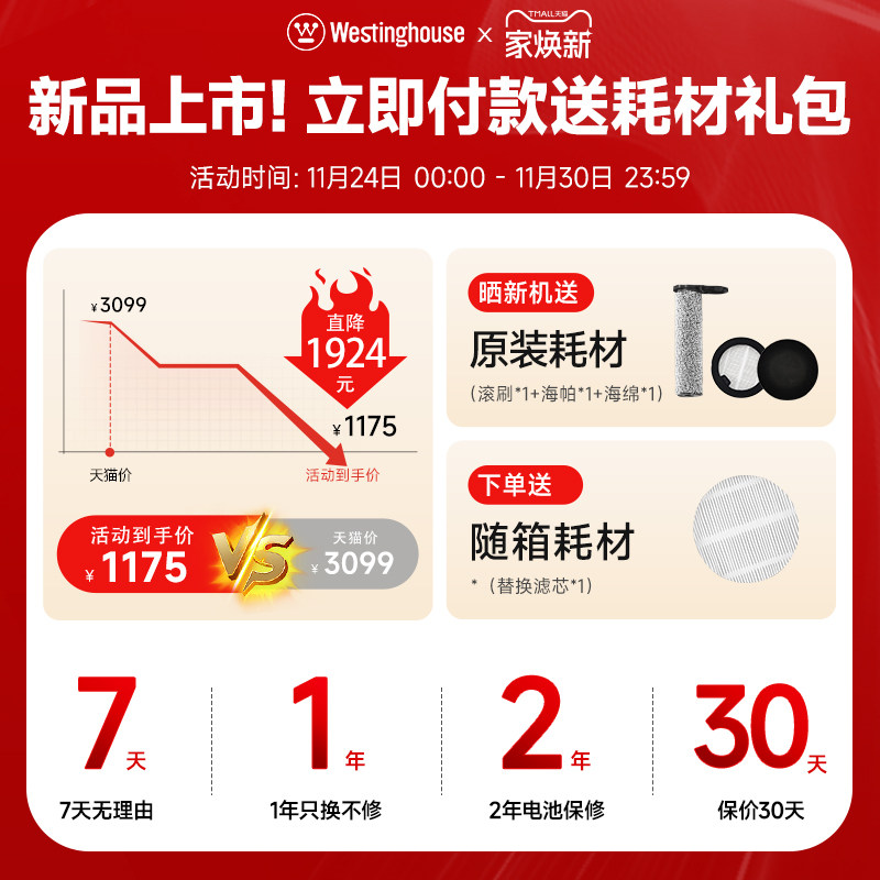 【全国补贴15%】西屋多合一吸尘器无线多功能绿光吸尘除螨机V10