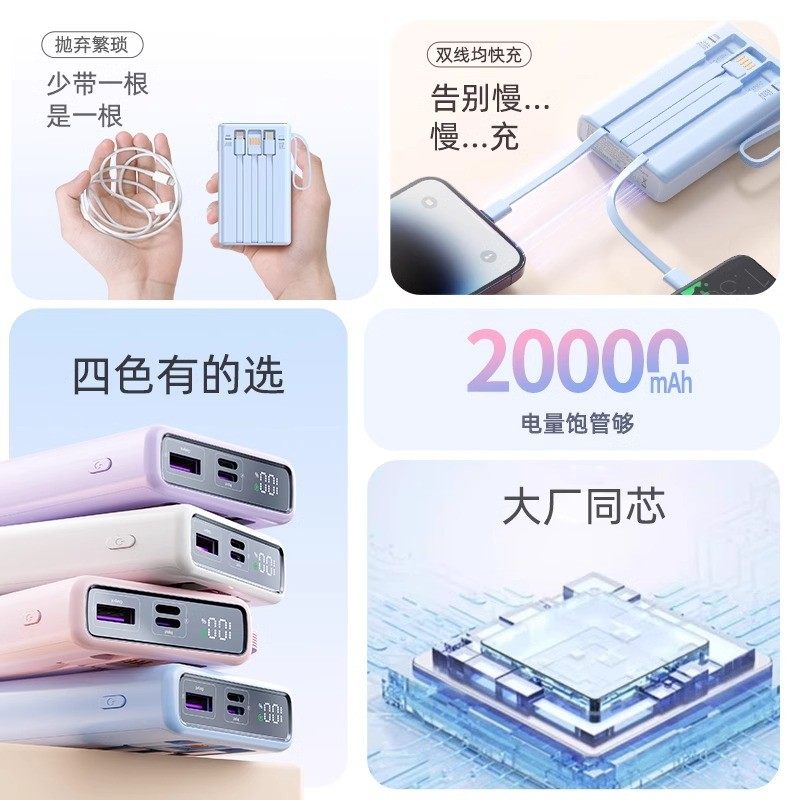 【充电宝3c认证可上飞机】倍思20000毫安官方2025新款快充大容量自带线移动电源小巧便携适用小米苹果专正品