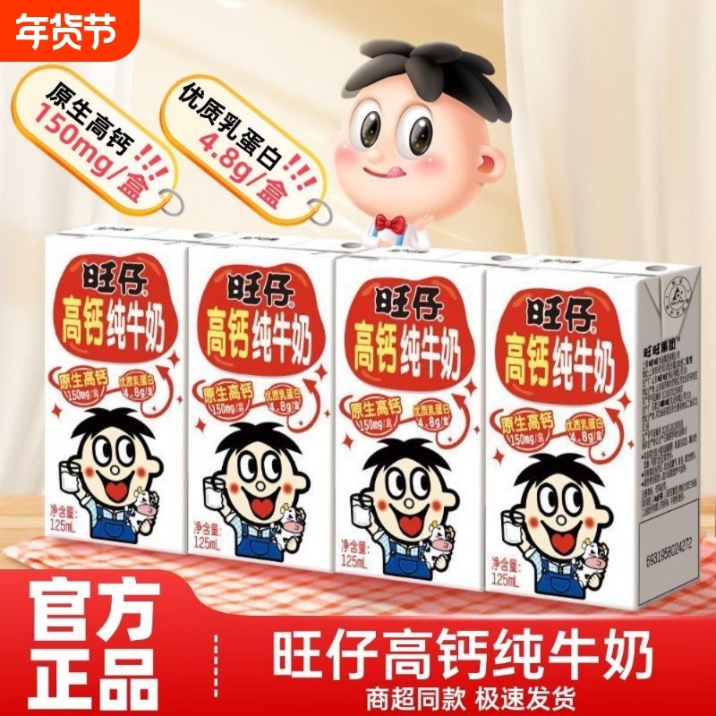 新日期旺旺旺仔高钙纯牛奶125ml/盒旺仔牛奶儿童学生早餐奶整箱