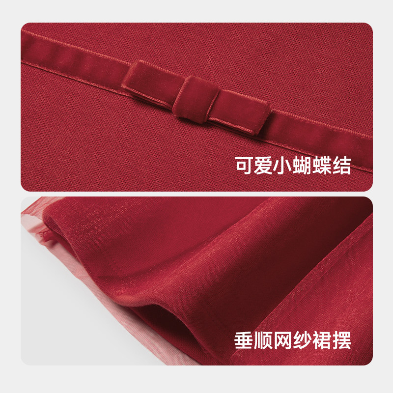 [抗菌远红外]女童连衣裙宝宝高领加绒蓬蓬网纱裙子儿童红色公主裙