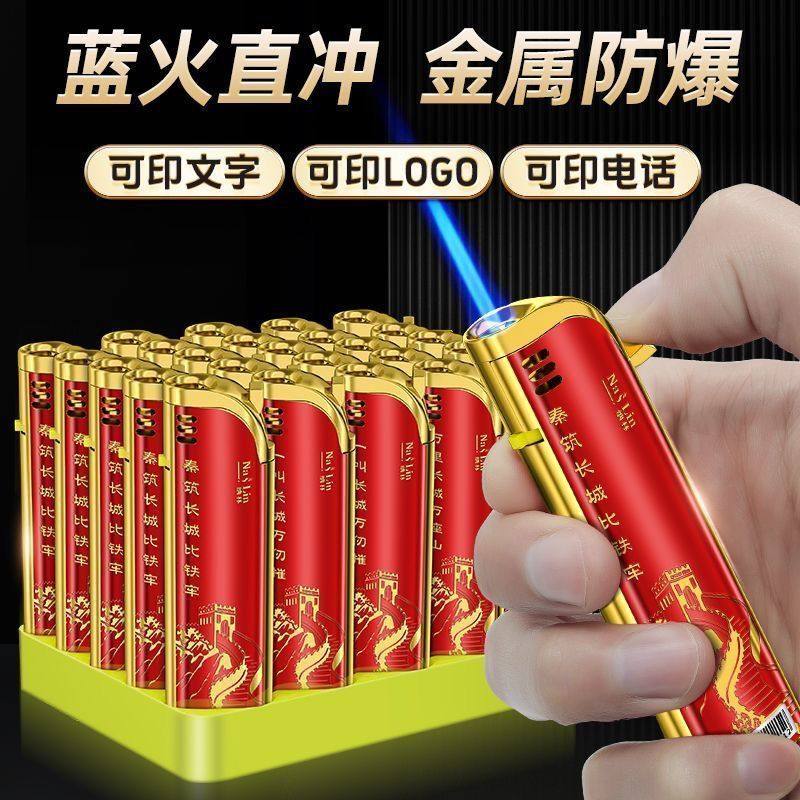 金属防风打火机2024新款细长直冲蓝焰简约加厚充气高颜值便捷批发