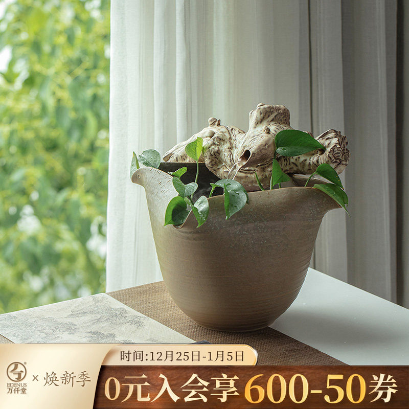 万仟堂创意陶瓷流水器家居循环加湿器中式办公室装饰摆件枯木逢春
