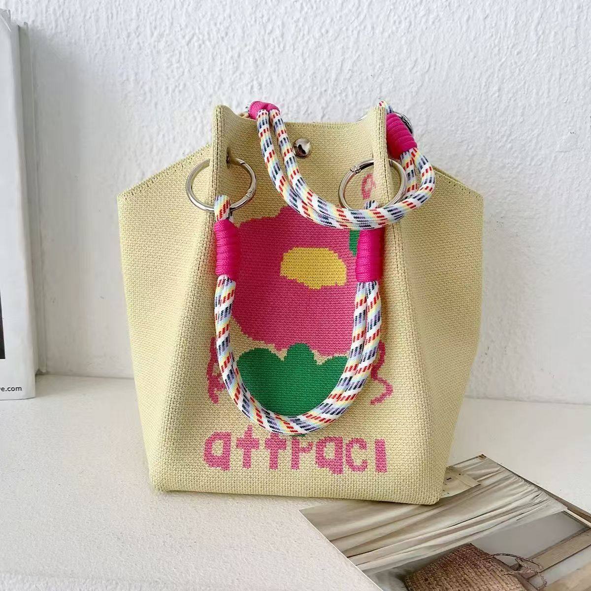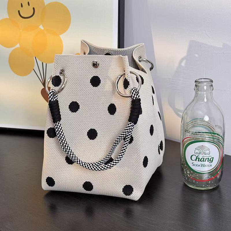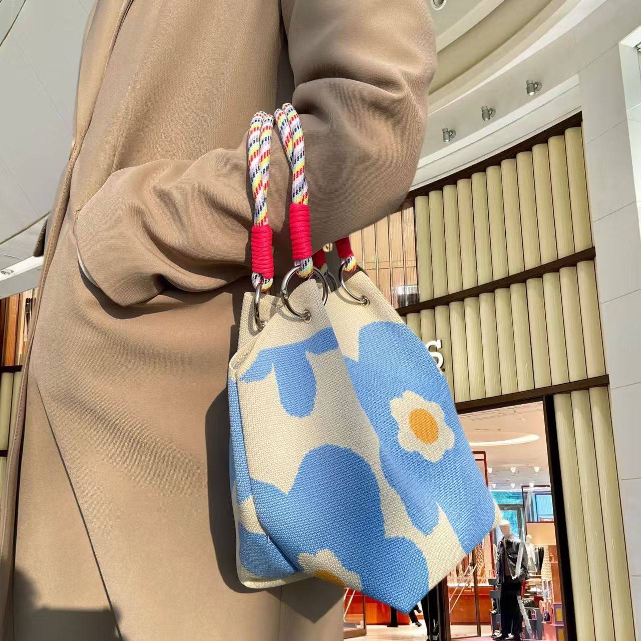 女士针织包手提包可爱精致编织手拿包手拎大容量便携手提袋水桶包