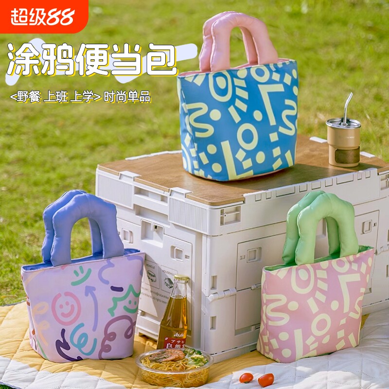 涂鸦手绘便当包学生上班族午餐包加厚铝箔保温饭盒袋户外手提袋子