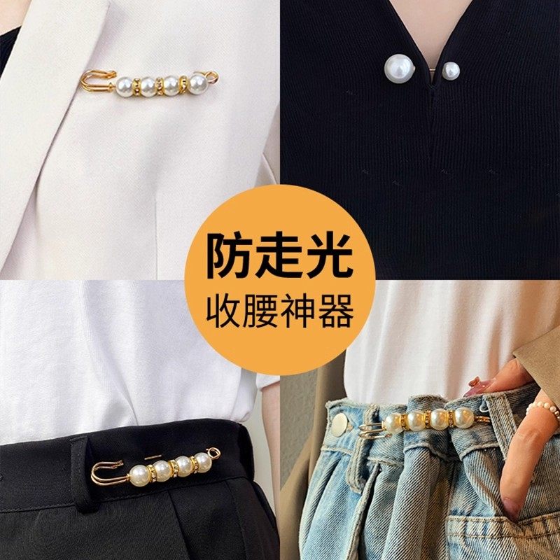 防走光扣裤子收腰神器衣服收紧胸针改小别针固定衣领针扣珠珠配饰