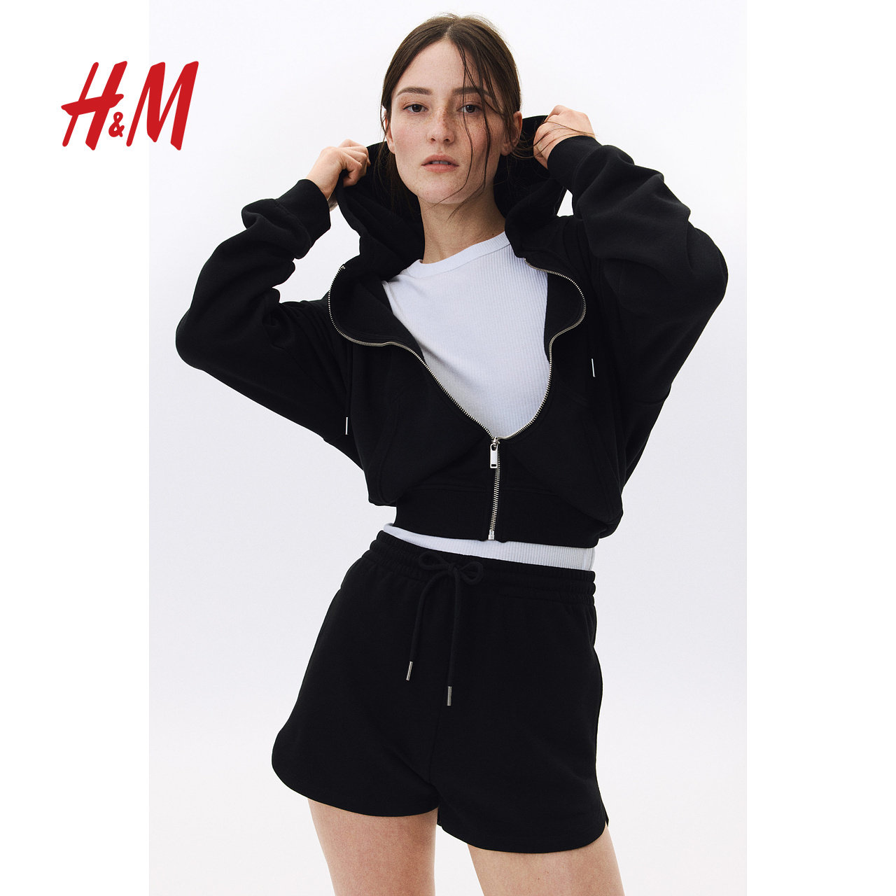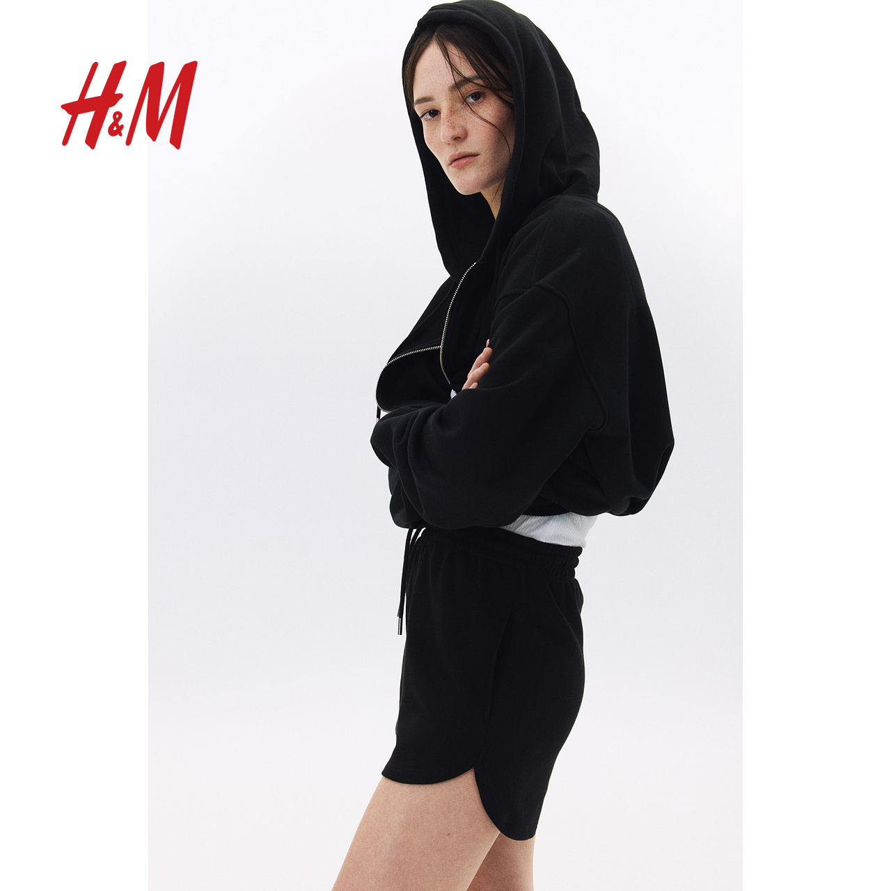 HM女装短卫裤冬季 休闲舒适简约柔软抽绳运动短裤1152096