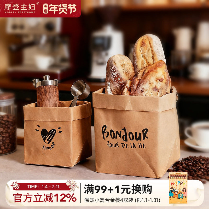 摩登主妇牛皮纸袋冰箱收纳袋子可水洗防油纸袋烘焙面包吐司包装袋