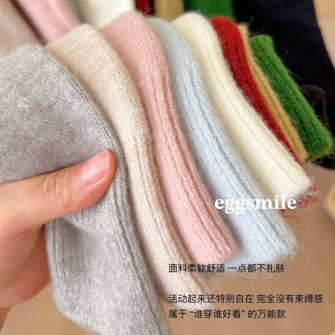 A羊绒毛衣女秋冬半高领打底衫加厚针织衫内搭上衣宽松纯色