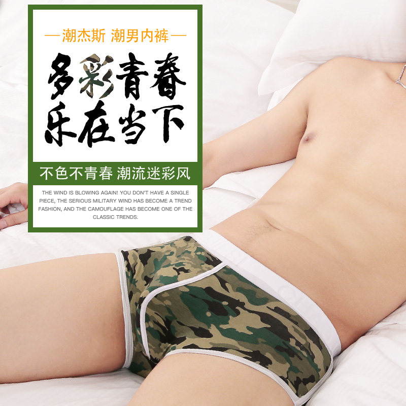 男士内裤男平角裤棉质青年低腰个性裤衩可爱运动性感四角短裤头潮