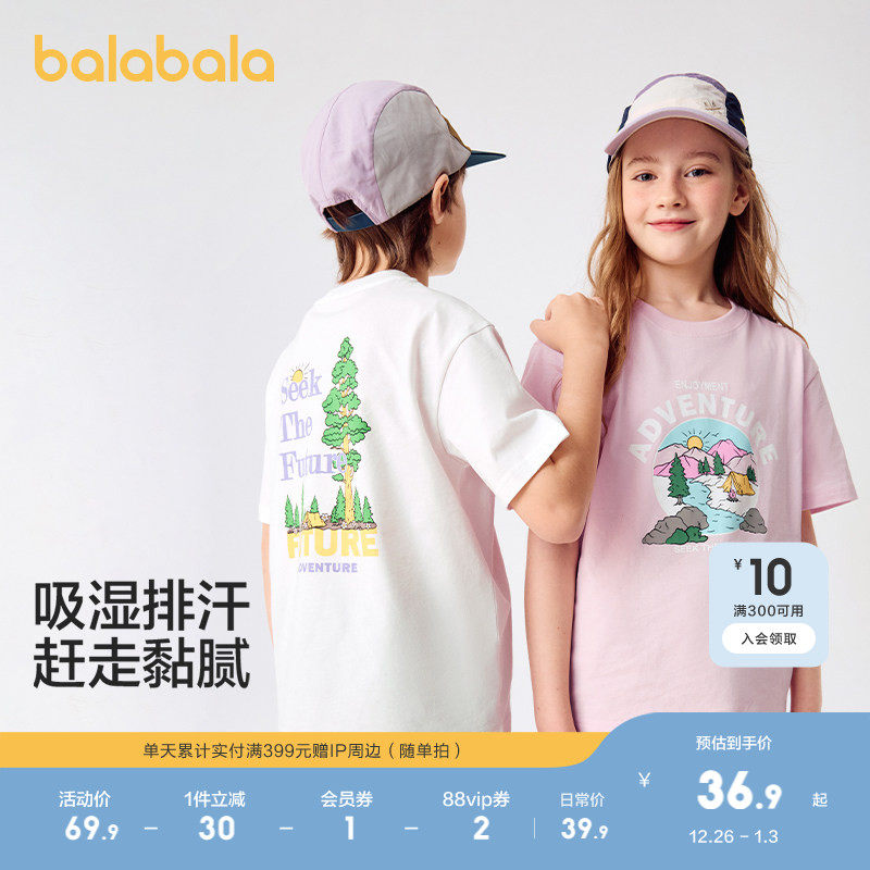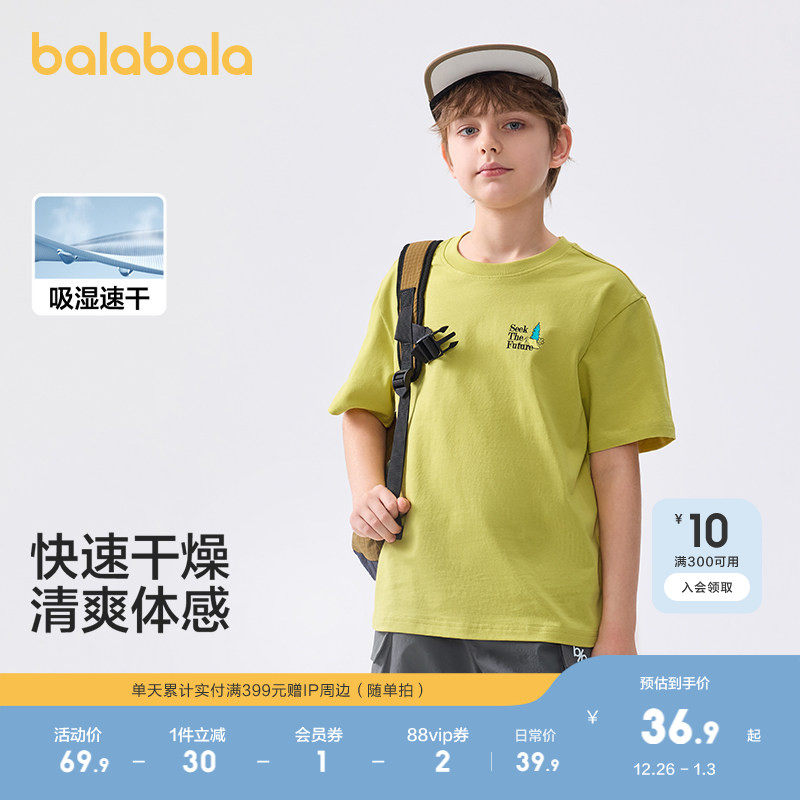 巴拉巴拉童装儿童短袖T恤男童女童上衣大童2025新款夏装速干时尚