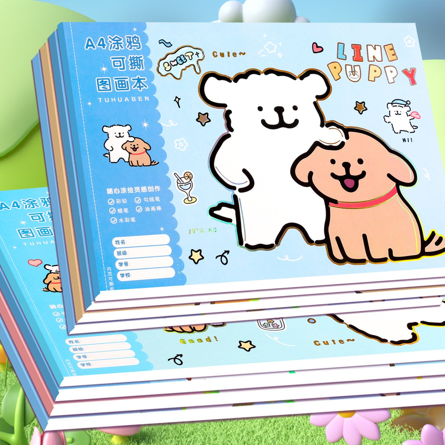 可爱图画本加厚小学生画画本线条小狗一年级专用幼儿园绘画本马克