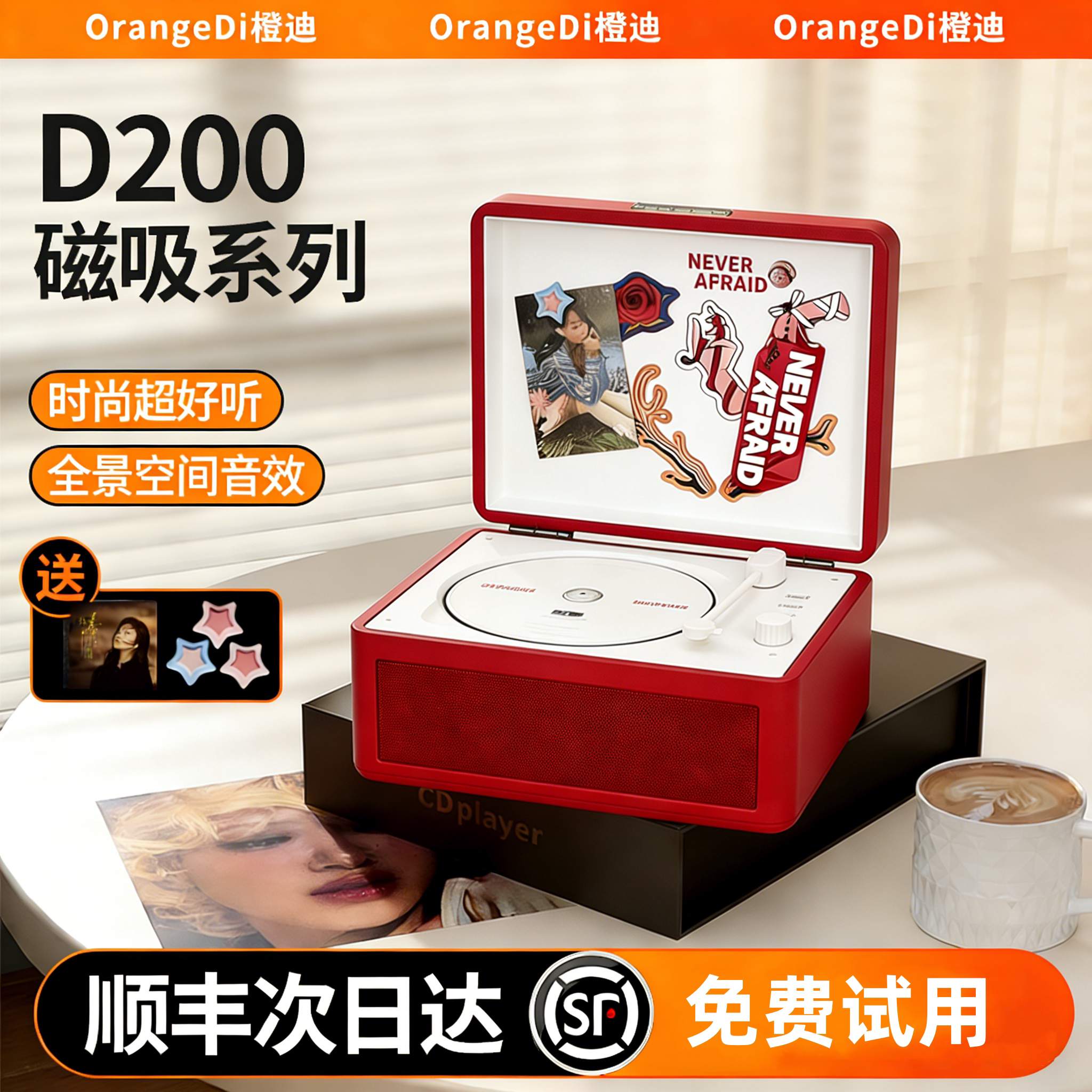 橙迪D200复古CD一体机发烧级唱片机专辑音乐便携音响光盘碟播放器
