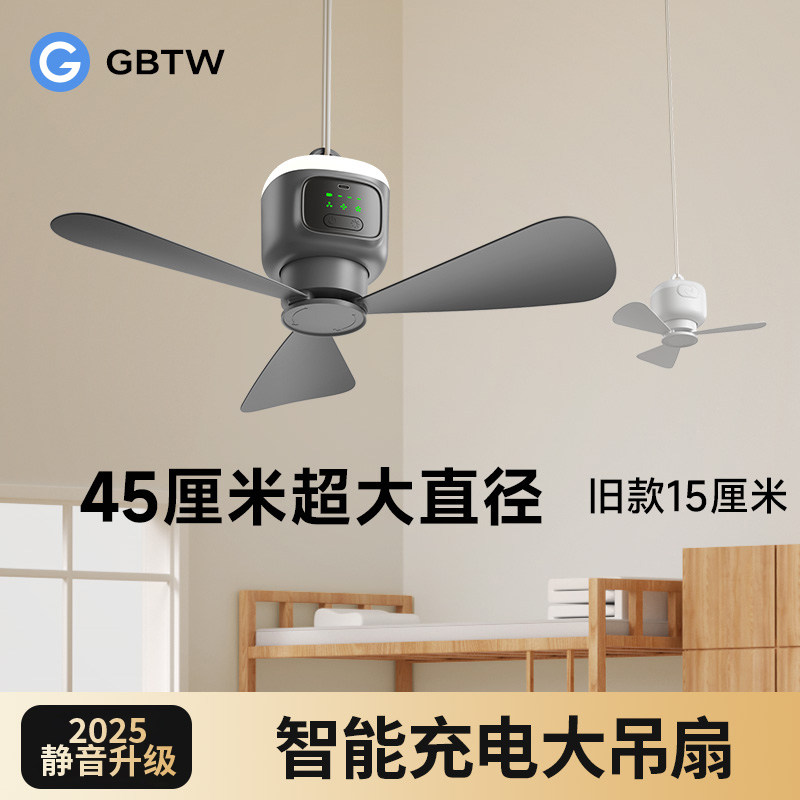 GBTW充电小吊扇USB学生宿舍微风静音小型电风扇床上长续航寝室露营充电风扇户外露营风扇夜灯上下铺婴儿床