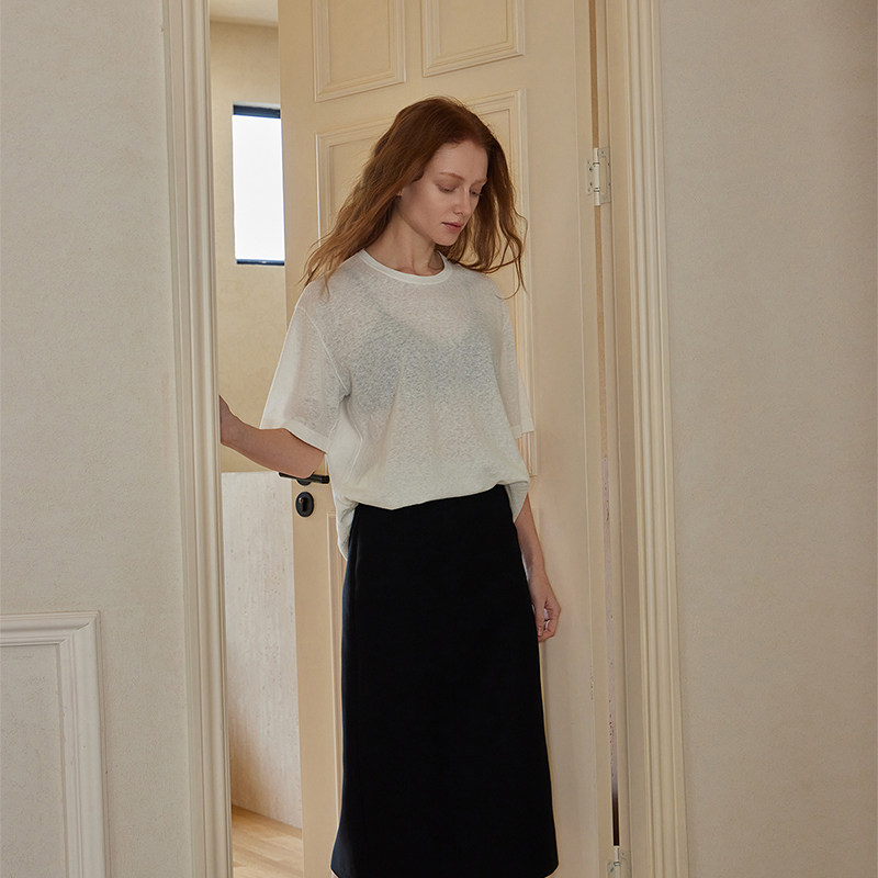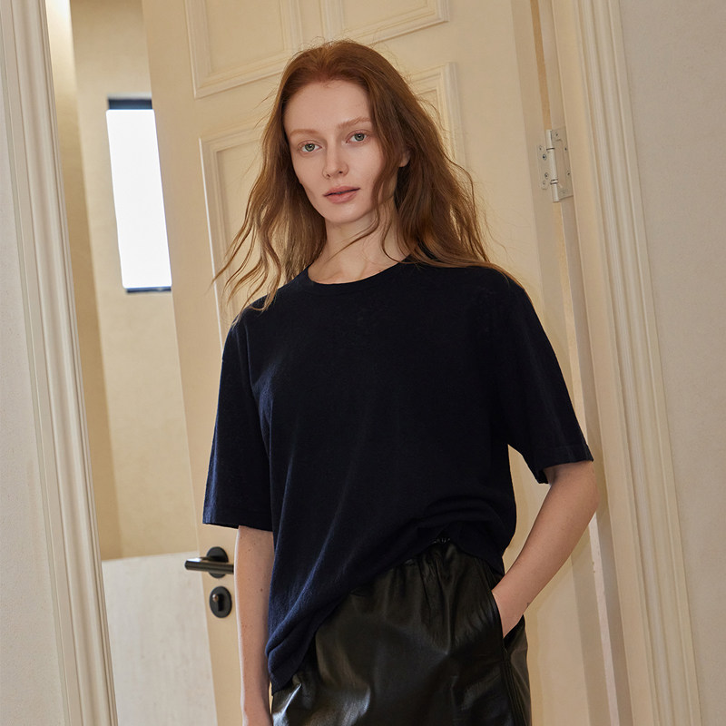 THEEASE舒适派亚麻棉混纺T恤衫柔软轻薄透气休闲针织圆领短袖上衣
