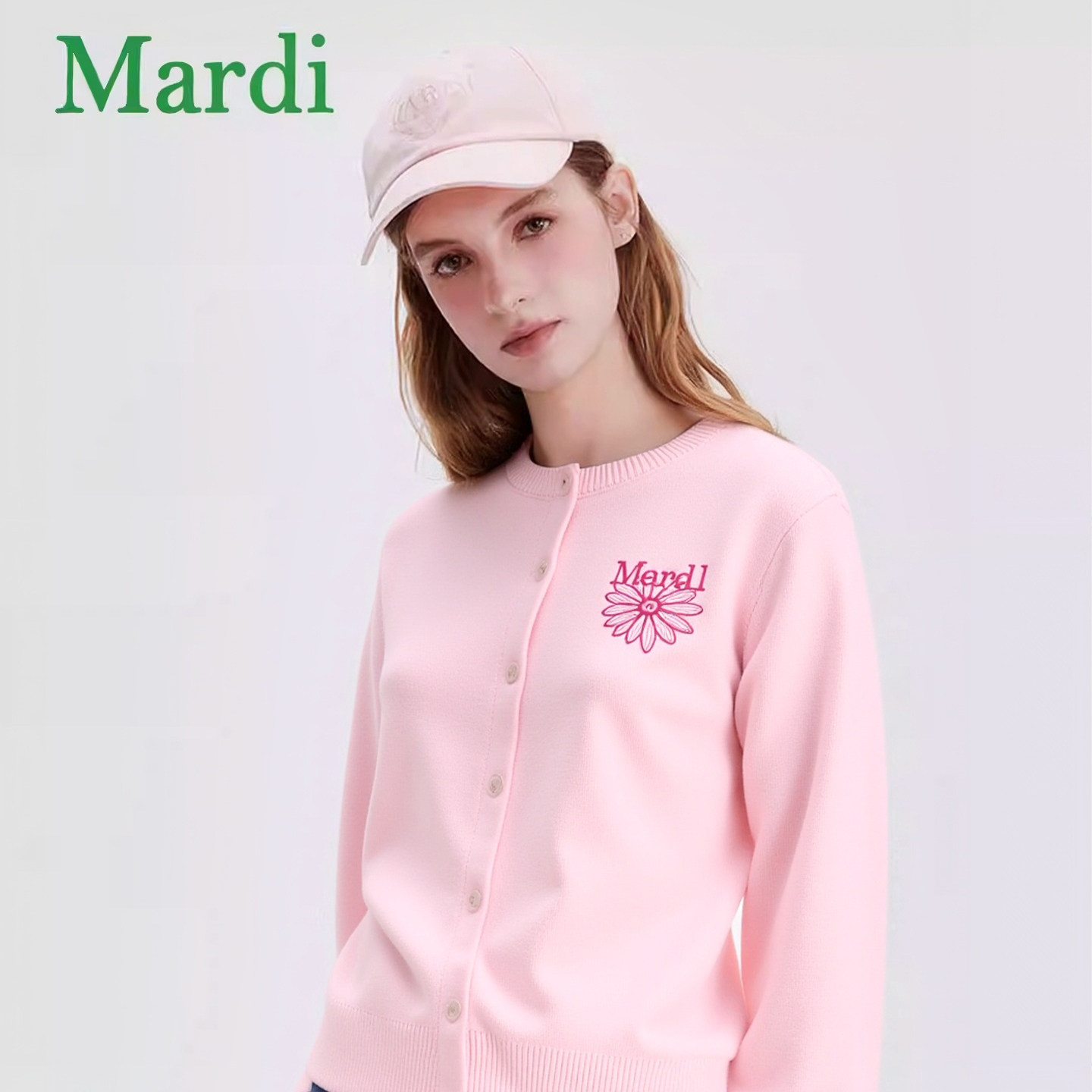MARDI小雏菊毛衣女士外套新款针织开衫休闲百搭长袖上衣粉色少女