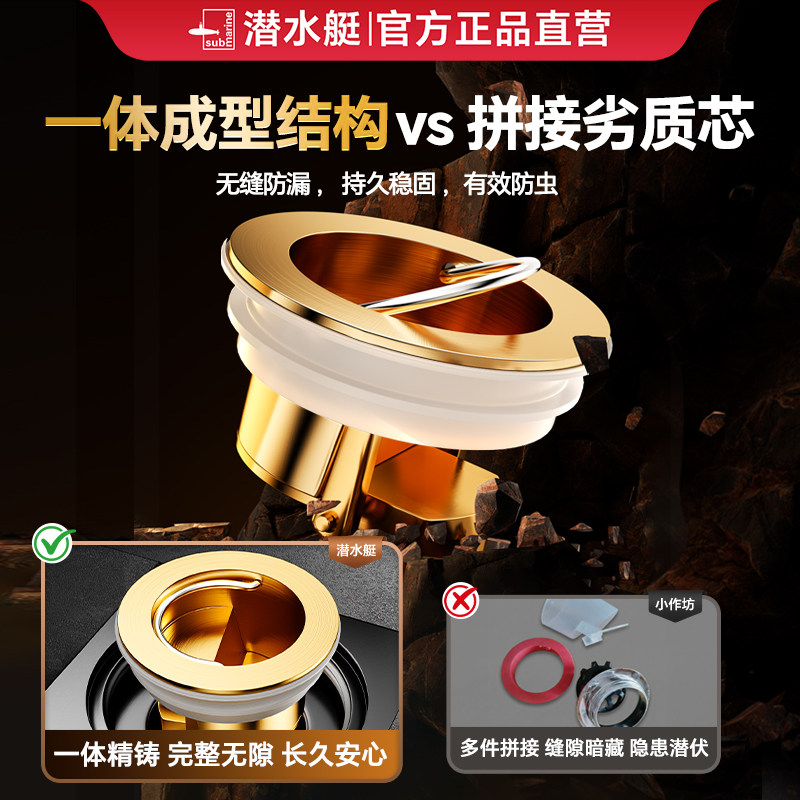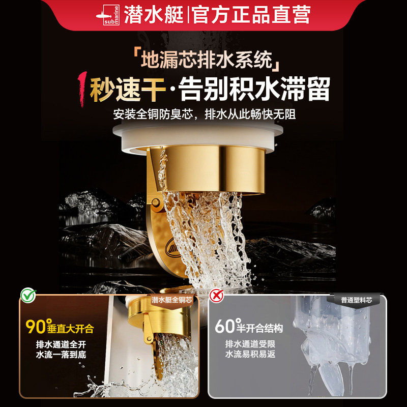 潜水艇地漏芯防臭器防虫卫生间通用内芯淋浴下水道防返臭神器反味